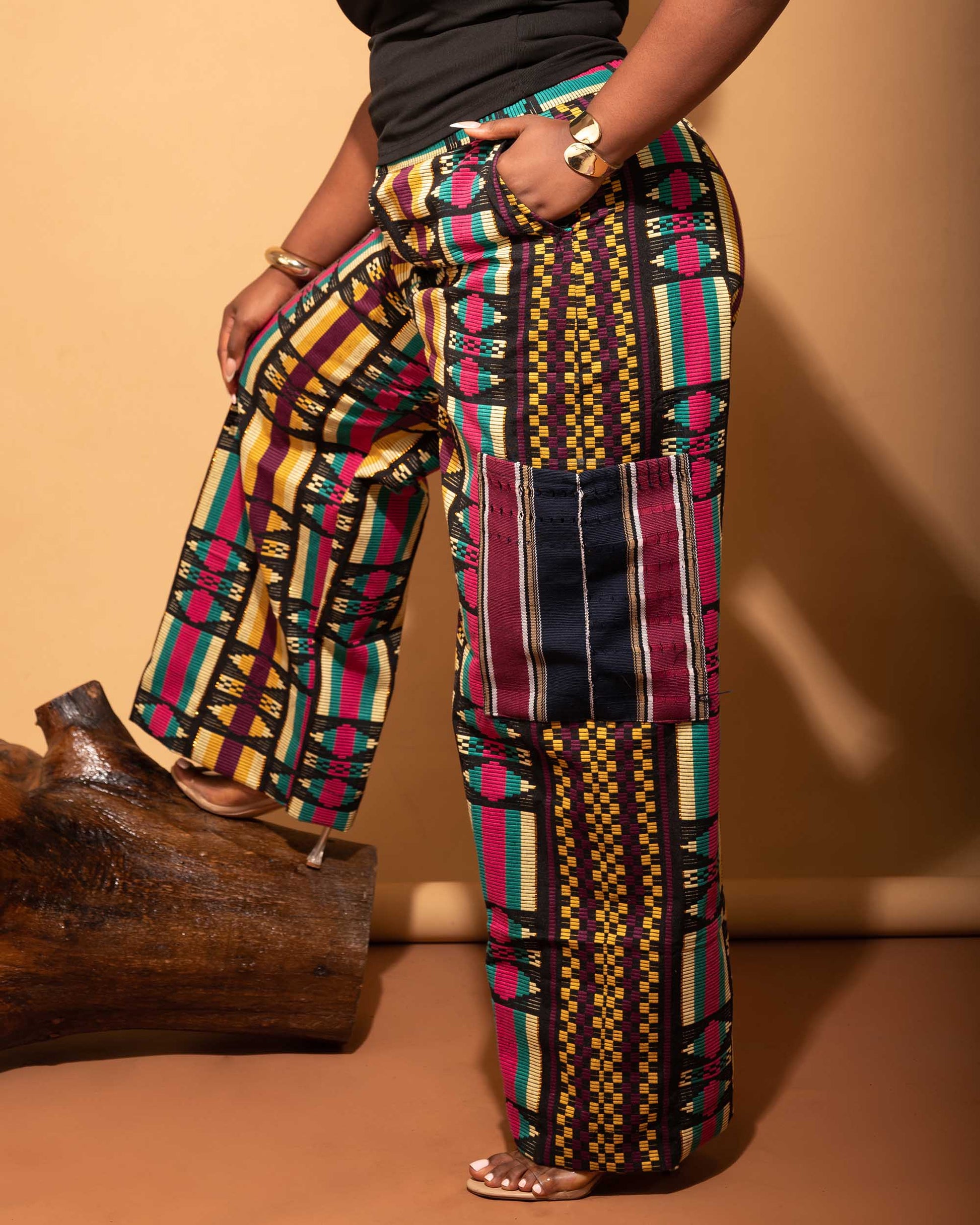 - IT'S MADE FROM HANDWOVEN AKWETE MATERIAL AND POCKETS MADE FROM ASOOKE.