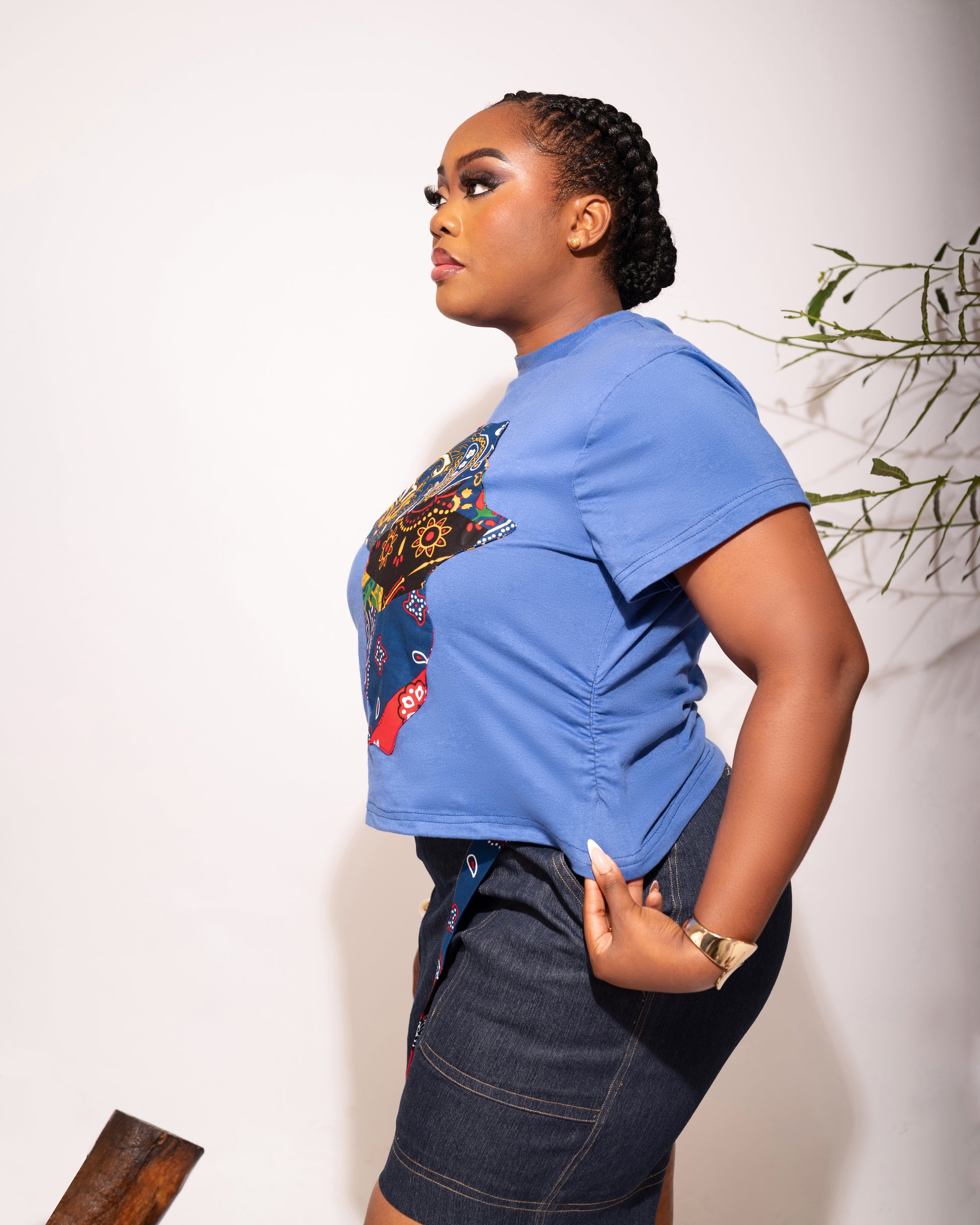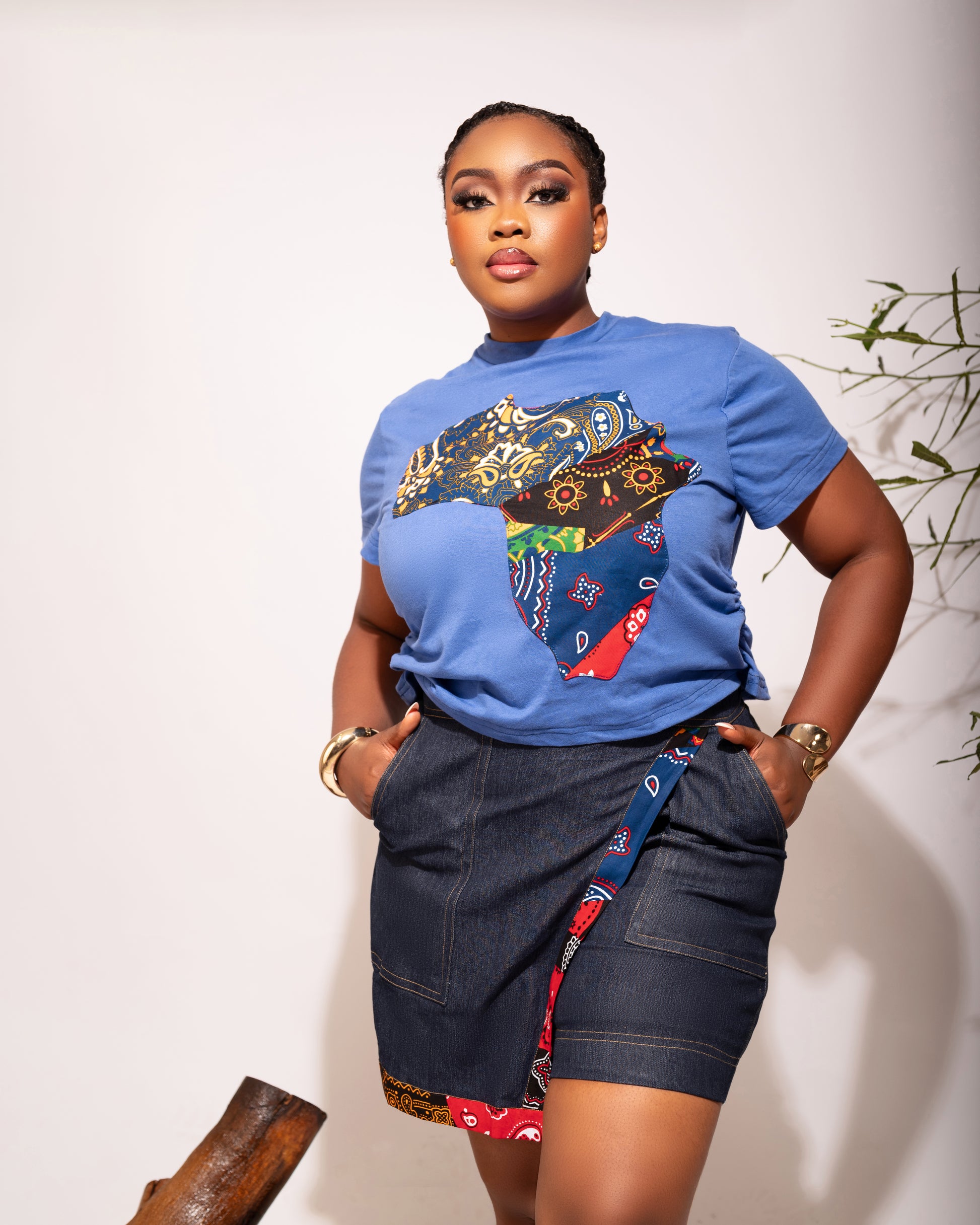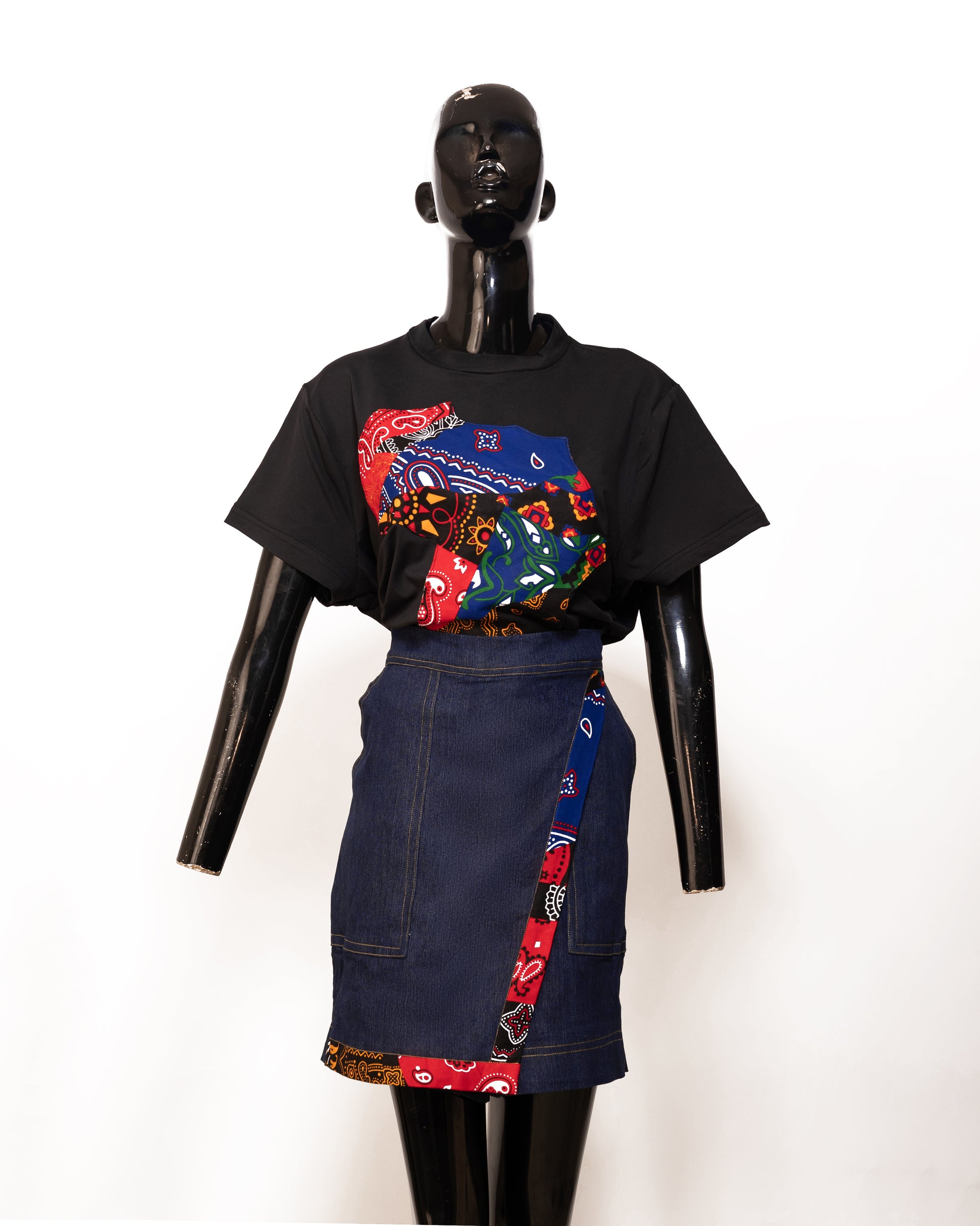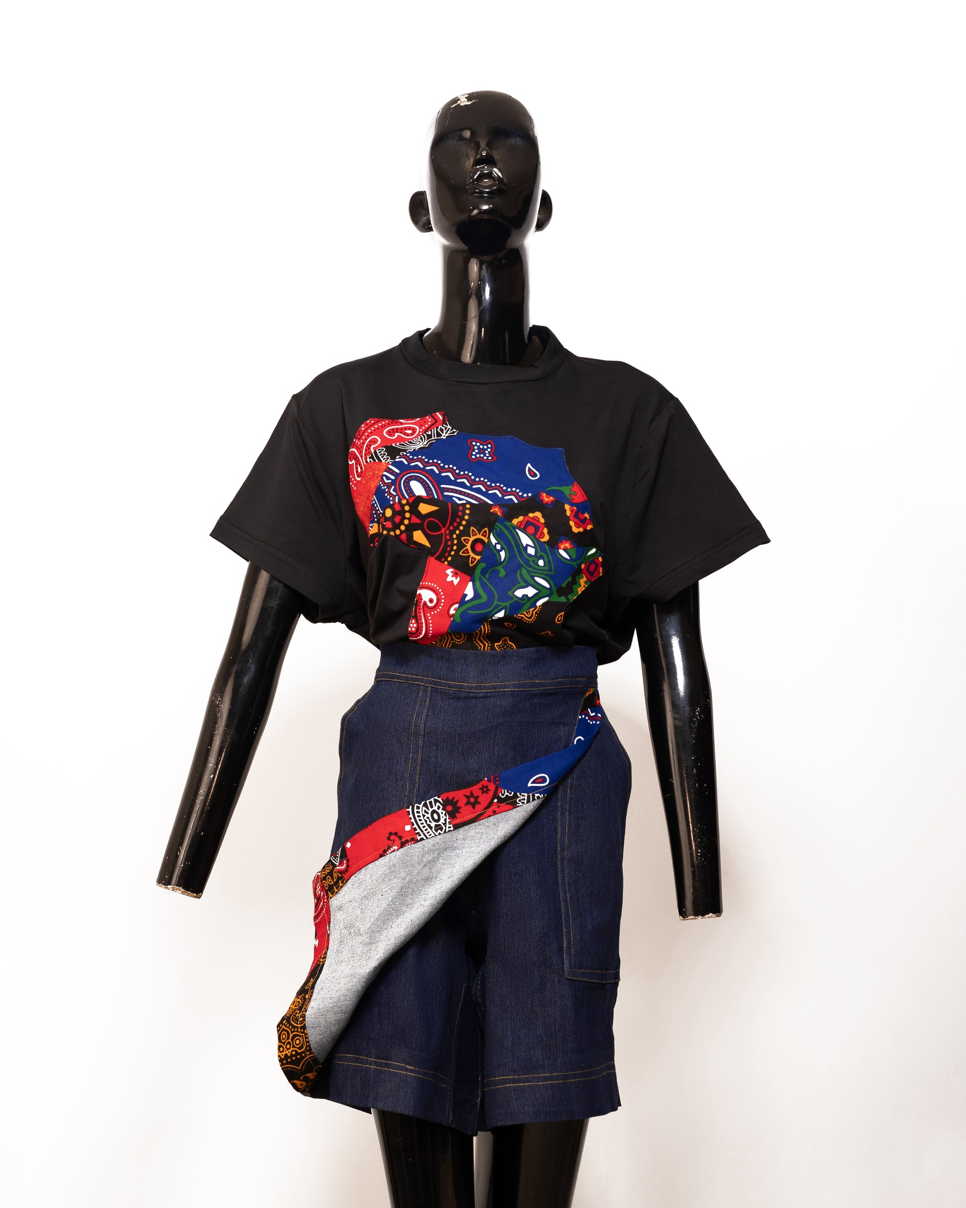 Whether you’re brunching with friends or dancing at a summer event, this African-inspired denim skort is your go-to for effortless style.