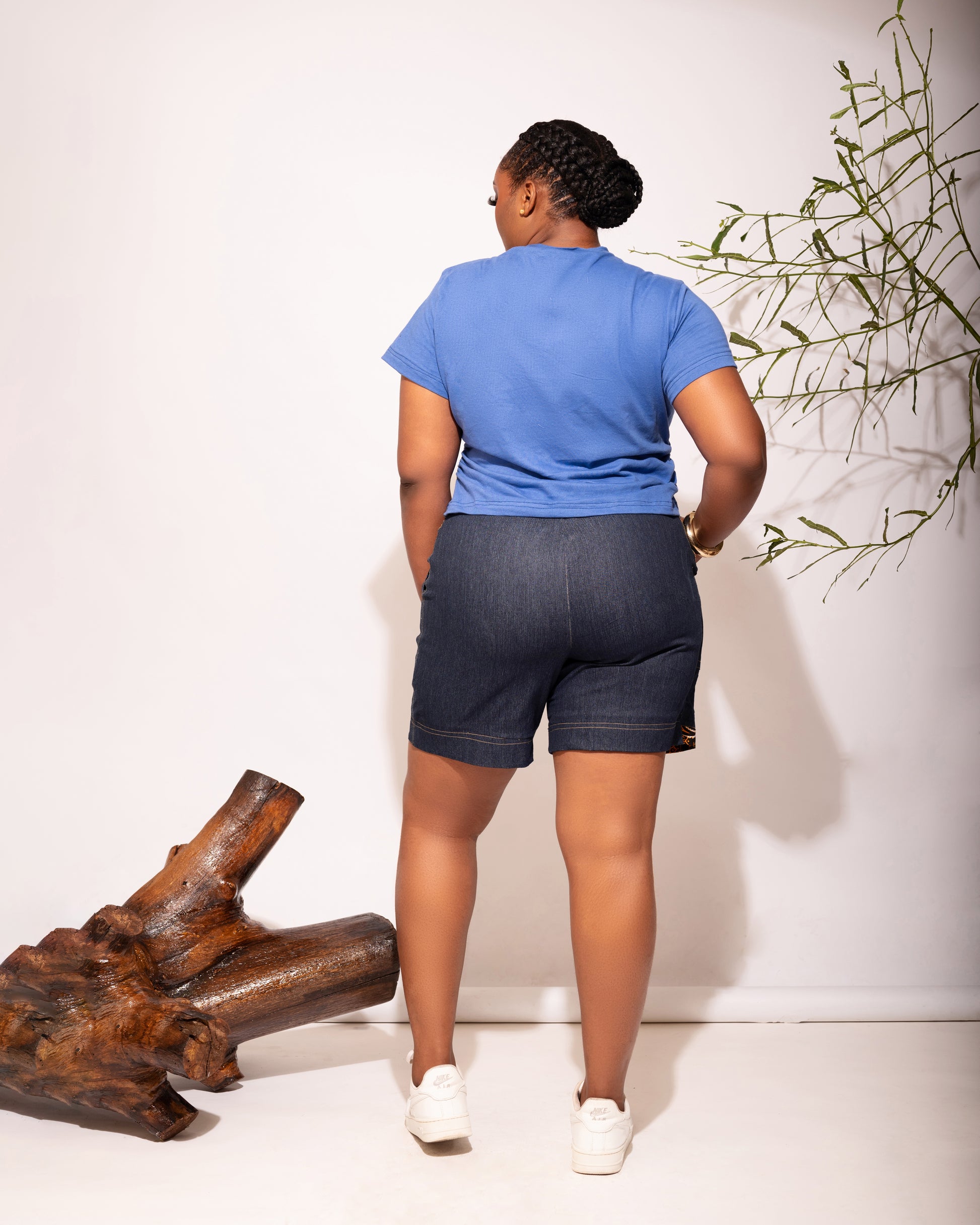Turn heads with our Denim Skort with Ankara Piping, where classic streetwear meets vibrant African flair. This stylish skort (a clever blend of skirt and shorts) offers the comfort of denim and the elegance of traditional Ankara detailing — a perfect piece for confident, fashion-forward women.
