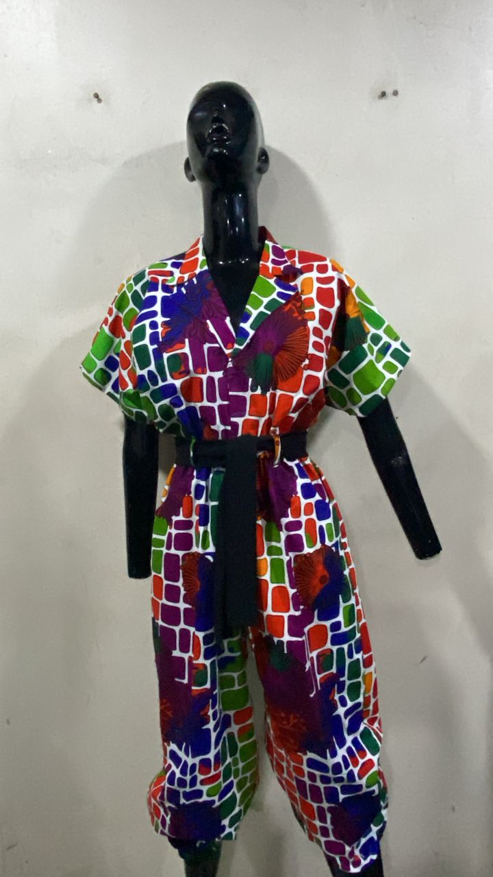 Stay chic and comfortable in this versatile culottes jumpsuit for women. Made from 100% Ankara cotton, it offers a breathable, stylish, and authentic African fashion look.